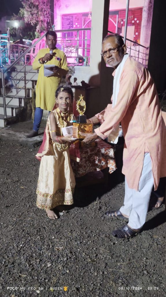 सर्व स्पर्धकांना वयक्तिक बक्षीस देण्यात आले, ज्यामध्ये 5 विशेष स्पर्धकांना ट्रॉफी आणि इतर बक्षिसांनी गौरविण्यात आले. यात पाच मुली विजेत्या आहे जिया बोभाटे, यशश्री पेंदोर, पुर्वा तेंलगे, वंशिका जुमनाके, पियु भोयर, मंडळाच्या या उपक्रमाचे गावातील नागरिकांनी भरभरून कौतुक केले असून, भविष्यात अशा सांस्कृतिक उपक्रमांची मागणी वाढू शकते, असे संकेत मिळत आहेत.या कार्यक्रमाचे अध्यक्ष माजी नगर अध्यक्ष श्री बबनराव भोंगारे.प्रमुख पाहुने श्री अन्नाजी उईके.श्री डोमकावळे काका.श्री राजु भाऊ वैध्द.तथा पत्रकार बंधु श्री मनोहर बोभाटे कार्यक्रम चे आयोजन व सुत्रसंचाल श्री संदिप पेंदोर तथा सुधीर डोमकावळे.अरुन भाऊ शिवनकर.मोरेस्वर वाकटे.गजु भाऊ वैद.विजु भाऊ जामुनकर .अशोक खेकडे सर.पाल भाऊ.पवन भोंगारे पराग भोंगारे. अनुप उईकें, सुमित बेसेकर.तिवसे.गजानन डाखोरे.उमप साहेब .सदाशीव गवळी .शिव पेंदोर राम वैद आकाश वैद अमोल गहुकार .बंटी ठाकरे.महुर्ले तथा या कार्यक्रम चे परिक्षक श्री सतिश काकडे.सर व श्री जुमनाके सर.आभार काकडे सरानी केले
