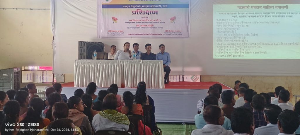 विधानसभाच्या निवडणुकीची प्रक्रिया पारदर्शक आणि सुलभपणे पार पाडावी या करिता दिं २६ ऑक्टोबर २०२४ रोजी शासकीय धान्य गोदाम व न्यू इंग्लिश हायस्कुल येथे निवडणूक निर्णय अधिकारी विशाल खत्री यांच्या उपस्थिती १ हजार ७५० अधिकारी कर्मचारी यांचे प्रशिक्षण पार पडले.