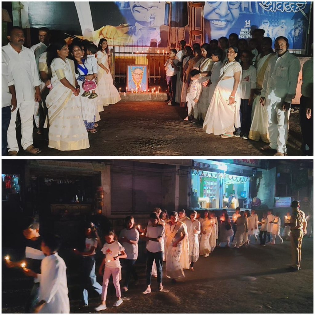 कँडल मार्च दरम्यान भीमसैनिकांसह समाजबांधव व स्त्रिया पांढरे वस्त्र परिधान करून मोठ्या संख्येने सहभागी झाल्या होत्या