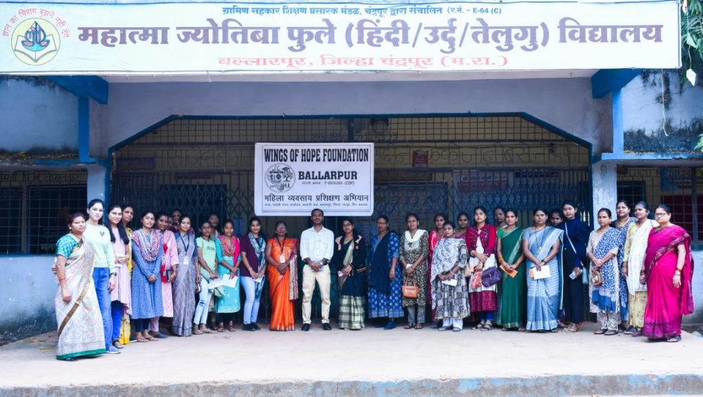 विंग्स ऑफ होप फाउंडेशन महिला व्यवसाय प्रशिक्षण अंतर्गत दिनांक 8-12-24 रविवारला महात्मा ज्योतिबा फुले विद्यालय (हिंदी /उर्दू /तेलुगु) बल्लारपूर या ठिकाणी महिलांना व्यवसायिक प्रशिक्षण देण्याकरिता लागणाऱ्या शिक्षीकांसाठी परीक्षा घेण्यात आली. यामध्ये टीचर स्टाफ या पोस्टसाठी सुमारे 35 महिला परीक्षेसाठी बसल्या होत्या. या विषयाची सविस्तर माहिती सांगताना विंग्स ऑफ होप फाउंडेशनचे संचालक श्री.शालिक इपकायलवार सरांनी अशी माहिती दिली की, ही संस्था महिलांमध्ये असलेल्या सुप्त कलागुणांना वाव देऊन, त्यांच्यामध्ये जे स्किल आहेत तेच काम त्या महिलांना चांगल्या प्रकारे शिकवून त्यांना स्वतःच्या पायावर उभे राहण्याची ताकद देण्याचे काम ही संस्था करते. गरजू महिलांनी याचा फायदा घ्यावा असे जाहीर आवाहन या संस्थेच्या संचालकाने केले आहे. कारण या फाउंडेशनच्या माध्यमातून सर्व क्षेत्रातील महिलांना रोजगार प्राप्त होणार आहे. तसेच विंग्स ऑफ होप फाउंडेशन ने 01-12-24 या तारखेला singing ऑडिशन पार पाडले आणि तिथून बऱ्याच महिलांना रोजगार मिळणार आहे. अशी माहिती येथील संचालकाने दिली. या परीक्षेची संपूर्ण जबाबदारी समता लभाने मॅडम यांनी संस्थेच्या अधिकारी या नात्याने उत्कृष्ट रीतीने पार पाडली आणि ऑफिस स्टाफ म्हणून संगीता पडवेकर, नेहा महंतो ,चेताली वनकर, मंगला कुरवटकर, शालिनी मालेकर,पल्लवी गेडाम, यांनी विशेष सहकार्य केले.
