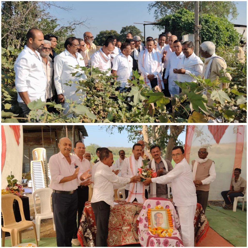शेतकरी आणि शेतकरी संघटनेच्या सोबत राहील. यावेळी नवीन तंत्रज्ञानाचे कपाशीचे प्लॉट शिवार फेरी करून पाहिले आणि सर्व माहिती करून घेतली. व कृषी व तंत्रज्ञान आघाडी सोबत काम करण्याची इच्छा व्यक्त केली.दिनांक 12 डिसेंबर शेतकरी संघटनेचा युगात्मा शरद जोशी यांचा स्मृतिदिन