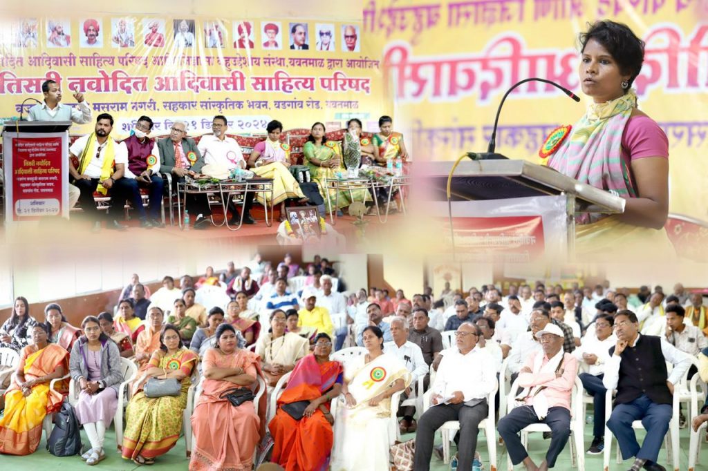 यवतमाळ येथे नुकतीच नवोदित आदिवासी साहित्य परिषद यवतमाळ येथे संपन्न झाली.साहित्य परिषदेचे अध्यक्ष प्रा.डॉ.संजय लोहकरे होते.डॉ.लोहकरे त्यांचे भाषणात म्हणाले की, आदिवासीं साहित्याचे लिखाण त्यांचे बोली भाषेतून झाल्यास आदिवासी संस्कृतिस आदिवासी समाज टिकेल,अन्यथा आदिवासींचे अस्तित्व नष्ट होईल. केवळ पुरस्कारासाठी लिहिलेले साहित्य आदिवासी साहित्य होऊ शकत नाही.असे ही ते म्हणाले,आदिवासीं साहित्य म्हणजे,आदिम अस्मिता अस्थित्वचा शब्दरूप आविष्कार म्हणजे आदिवासी साहित्य.नवीन पिढीने नविन दमाने, उत्साहाने समाजाच्या अस्तित्वासाठी साहित्य लिखाण केले पाहिजे,तरच आदिवासींचा इतिहासिक वारसा टिकणार आहे.असे त्यांनी सांगितले.उद्घघाटकीय भाषणात कवयित्री जसींता केरकेट्टा झारखंड म्हणाल्या. आदिवासीं संस्कृती ही मानवतावादी असून,पृथ्वीचे संरक्षण आदिवासींनी केले आहे.निसर्गच त्यांची संस्कृती आहे.पण आदिवासी हा उपेक्षी का?ही खंत त्यांनी आपल्या भाषणात व्यक्त केली.उद्घघाटकिय सत्रात वक्ते म्हणून उपस्तीत असलेले प्रा. प्रब्रम्हनंद मडावी आणि प्रा.शीतल ढगे यांनी त्यांचे मनोगतात त्यांनी सांगितले, आदिवासींचया संविधानिक हक्कावर कसे आक्रमण होत आहे,त्यांचे आरक्षण चोरल्या जात आहे,विस्थlपण केल्या जात आहे.जल,जमीन, जांगलावरील अधिकार काढून घेतल्या जात आहे, साहित्य परिषदे मध्ये आदिवासीच्या ज्वलंत प्रश्नावर मौलिक चर्चा करण्यात आली. प्रमुख अतिथी बाळकृष्ण गेडाम,राजू मडावी,पैकूजी आत्राम,शंकर मडावी, डॉ.अरविंद कुळमेथे यांनी कविता सादर करून आदिवासींच्या राजकीय स्थितीचे वर्णन करतांना सांगितले,लोकशाही दारूच्या नशेत बुडत आहे,तिला वाचवायचे असेल तर उलगुलनाचा धागा बनले पाहिजे असे सांगितले.पहिल्या सत्रात प्रास्ताविक प्रा.वसंत कनाके यांनी मांडले,संचालन ॲड.अरविंद सिडाम यांनी केले तर आभार विद्या परचाके यांनी मानले. या साहित्य परिषदेत व्यंकटेश अत्राम साहित्यरत्न पुरस्कार प्रा.डॉ.संजय लोहकरे यांना प्रदान करण्यात आला. आणि मधुकरराव मडावी साहित्यभूषण पुरस्कार कवयित्री जसिंता केरकेट्टा झारखंड यांना प्रदान करण्यात आला.