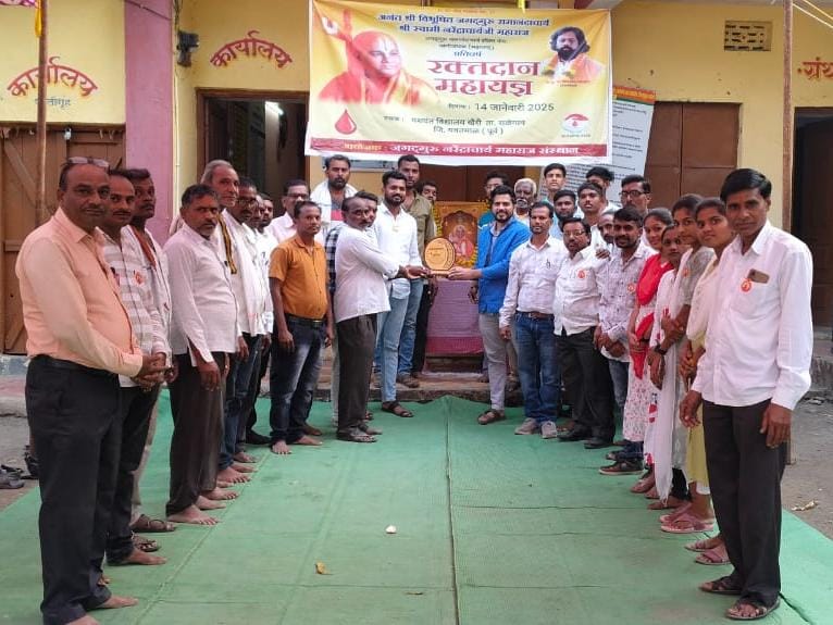 खैरी येथे दिनांक १४-१-२५ रोज मंगळवारला जगतगुरु नरेंद्राचार्य महाराज संस्थान व्दारा दरवर्षी ४ जानेवारी ते १९ जानेवारी पर्यंत रक्तदान महायज्ञाचे केले जाते.दरवर्षी प्रमाणे या वर्षी ही यशवंत विद्यालय खैरी येथे भव्य रक्तदान शिबिराचे आयोजन करण्यात आले होते.खैरी येथे रक्तदान शिबिर उत्साहात पार पडला. या शिबिरामध्ये एकूण 106 रक्तदात्यांनी रक्तदान केले. या कार्यक्रमाला प्रमुख पाहुणे म्हणून येथील श्रीकांत राऊत सरपंच ग्राम पंचायत खैरी, प्रभाकर लाकडे, कैलास डोंगरकर उपस्थित होते. कार्यक्रम यशस्वी करण्यासाठी तालुका अध्यक्ष सुनिल श्रीरामे, प्रणय काळे, रविन्द्र इंगोले गजानन येरवडे अनिल गौरकर, स्वप्निल गौरकर, गौरव पेचे, परशुराम लोणारे, मयूर खापरकर, वैभव हरबडे, वैभव डाहूले इत्यादींनी प्रयत्न केला. ( फोटो सोबत ) महाराष्ट्र सिकलसेल, अँमेनिया,हिमोफिलीया , थॅलेसेमिआ, ब्लड कॅन्सर, किडनी फिल्युअर, पेशंट जास्त प्रमाणात आढळतात अशा रुग्णांना वारंवार रक्ताची नितांत आवश्यकता असते. यासाठी महाराष्ट शासनाच्या रक्तपिढ्यांना रक्तबाटला देण्याचा आमच्या संप्रदयामार्फत निश्चित केले आहे.आपल्या दैनंदिन जीवनातील फक्त पाच मिनिट रक्तदानासाठी आवश्यक आहे . तुमच्यासाठी ते आहे फक्त दान ,मात्र गरजुंना ते आहे जिवनदान ! याकरिता नरेंद्राचार्य महाराज संस्थान व्दारा भव्य रक्तदान शिबिराचे आयोजन खैरी येथे करण्यात आले होते.