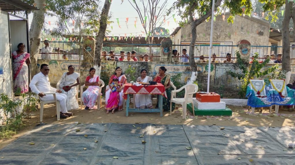 यावेळी सरपंच ,शाळा व्यवस्थापन समितीच्या अध्यक्षा सौ सोनिका टोरे, उपाध्यक्ष, तसेच शाळा व्यवस्थापन समिती सदस्य, ग्रामपंचायत सचिव , पडवारी , उपसरपंच, सर्व ग्रामपंचायत सदस्य, व ग्रामपंचायत कर्मचारी, अंगणवाडी सेविका, अशा वर्कर गावातील सर्व विद्यार्थी, पालक वर्ग मोठ्या संख्येने उपस्थित राहून राष्ट्रपिता महात्मा गांधी व डॉक्टर बाबासाहेब आंबेडकर यांच्या प्रतिमेचे पूजन करून शाळा व्यवस्थापन समितीच्या अध्यक्ष यांच्या हस्ते ध्वजारोहण करण्यात आले. आणि ग्रा. पं. मार्फत स्थानिक संसाधन एल. आर. पी. म्हणून सौं. कविता धुर्वे यांची निवड झाली.