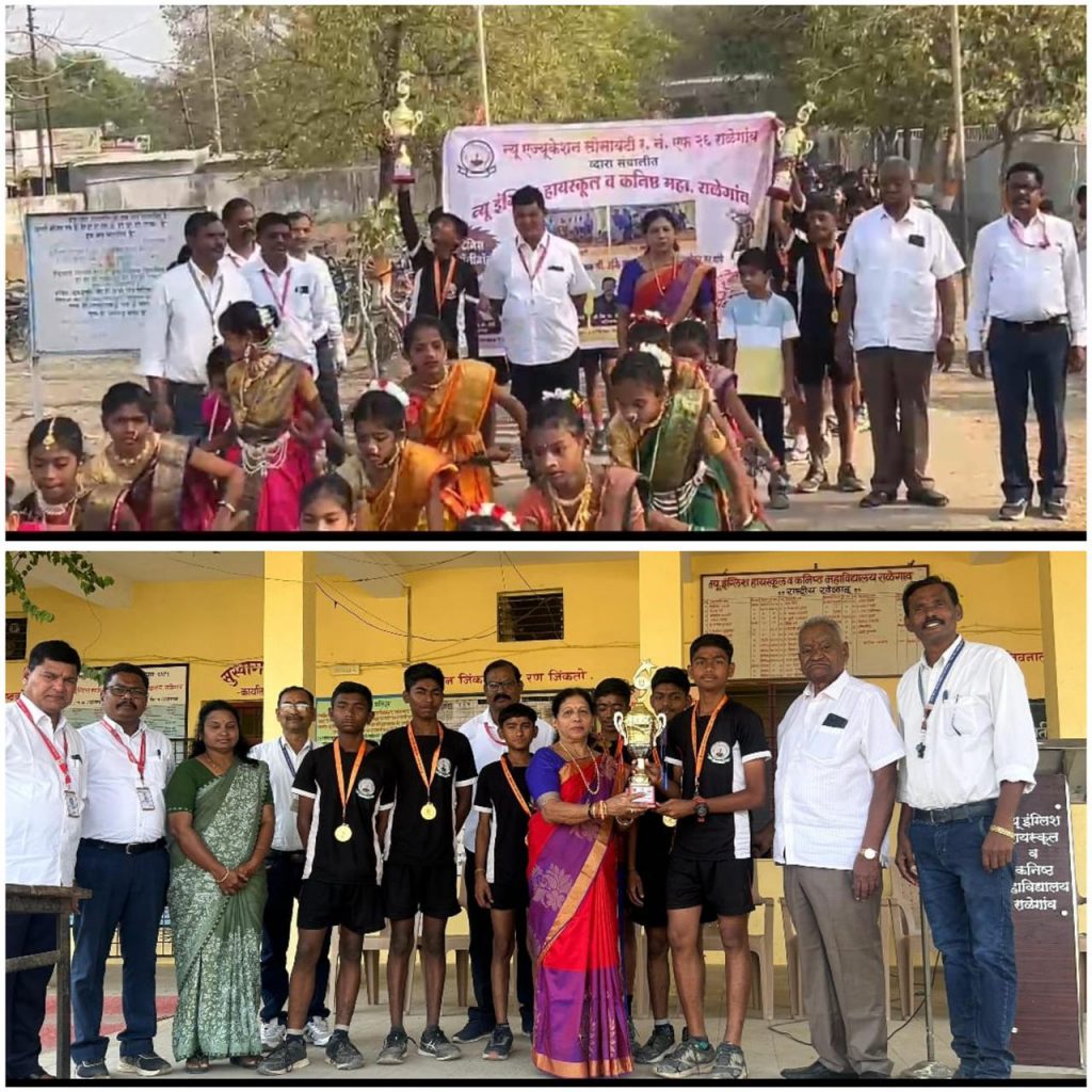 क्रीडा व युवक संचनालय महाराष्ट्र राज्य पुणे, अंतर्गत जिल्हा क्रीडा अधिकारी नांदेड व महाराष्ट्र राज्य टेनिस हॉलिबॉल असोसिएशन यांच्या शालेय राज्यस्तरीय 14 वर्ष वयोगटातील.मुले व 17 वर्ष वयोगटातील मुले टेनिस हॉलिबॉल मैदानी स्पर्धा सावित्रीबाई फुले माध्यमिक विद्यालय, नांदेड येथे दिनांक 4 फेब्रुवारी रोजी पार पडली यामध्ये यवतमाळ जिल्ह्यात मैदानी स्पर्धेत आपला दबदबा असणारे राळेगाव येथील न्यू इंग्लिश हायस्कूल व कनिष्ठ महाविद्यालय येथील 14 वर्ष वयोगटातील मुले व 17 वर्ष वयोगटातील मुले असे दोन संघ झालेल्या अंतिम स्पर्धेत एकाच वेळी विजेते ठरले. यामध्ये शाळेतील राज्य स्तरिय टेनिस हॉलिबॉल विजयी 14 वर्ष संघात खेळाडूं म्हणून मंथन ठाकरे, जयकांत शिखरे, पियुष देशमुख, यश सावरकर, आदर्श गाडगे मनीष एकोणकर हे विद्यार्थी खेडाळू म्हणून उपस्थित होते. तर शाळेतील राज्यस्तरिय टेनिस हॉलिबॉल विजयी 17 वर्ष वयोगटातील मुलांच्या संघात खेळाडूं म्हणून लकी राऊत, हिमांशू लढी, वेदांत बोदडे , अर्पित राऊत, सोहम साळवे, यश ढगले, हे खेडाळू उपस्थित होते. शाळेतील हे दोन ही विजयी संघ आता टेनिस हॉलिबॉल राष्ट्रीय स्पर्धा साठी पात्र ठरले आहे. याबद्दल न्यू एज्युकेशन सोसायटी, राळेगाव चे अध्यक्ष बी. के. धर्मे,सचिव डॉ. अर्चनाताई धर्मे, तसेच शाळेतील सर्व अधिकारी व शिक्षकांकडून विजयी संघाची राळेगाव शहरातील मुख्य रस्त्यावर ब्यांड पथकांसह विजयी रॅली काढून विजेत्यांचे भव्य स्वागत,सत्कार व भोजन देण्यात आले..यावेळी शाळेतील