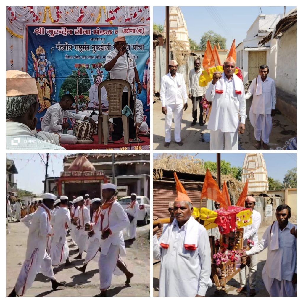 राळेगाव तालुक्यातील वाढोणा (बाजार) येथे गुरुदेव सेवा मंडळ वाढोणा (बाजार) व तसेच समस्त गावकरी यांचे सहकार्याने संतगाडगे बाबा यांच्या जयंती निमित्त दिनांक २२फेब्रुवारी ते २३फेब्रुवारी या दोन दिवस राष्ट्रसंत तुकडोजी महाराज ५६ वा पुण्यतिथी साजरी करण्यात आली, पहिल्या दिवशी ध्यान प्रार्थना आणि रामधून काढून रात्री ह. भ.प.प्रमोद महाराज देशमुख यांचे कीर्तन होते, कीर्तन करत असताना त्यांच्या सबोत तबला वादक पवन महाराज दडांजे सावनेर , व हार्मोनियम वादक भारत महाराज मेश्राम आठमुर्डी, आणि उत्कृष्ट गायक नरेश महाराज पिंपळगाव, व सह गायक पांडुरंग उइके महाराज वाढोणा (बाजार) हे हजर होते. वदुसऱ्या दिवशी ग्रामीण भागातील वारकरी दिंडी स्पर्धेचे आयोजन करून गावातून पालखी सोहळा व मिरवणूक काढण्यात आली यावेळी यवतमाळ जिल्हा गुरुदेव प्रचारक मा श्री शेरअली बापू लालानी यांनी सामुदायिक प्रार्थनेचे महत्व काय आहे या बद्दल ग्रामस्थांना मार्गदर्शन केले तसेच नवीन मानवता मंदिर चे रिबीन कापून लोकार्पण करण्यात आले, दोन दिवस वाढोणा नगरी मध्ये उत्साहाचे वातावरण निर्माण झाले. या कार्यक्रमाला उपस्थित सर्व गावकऱ्यांचे गुरुदेव सेवा मंडळ वाढोणा बाजार यांनी आभार मानले.