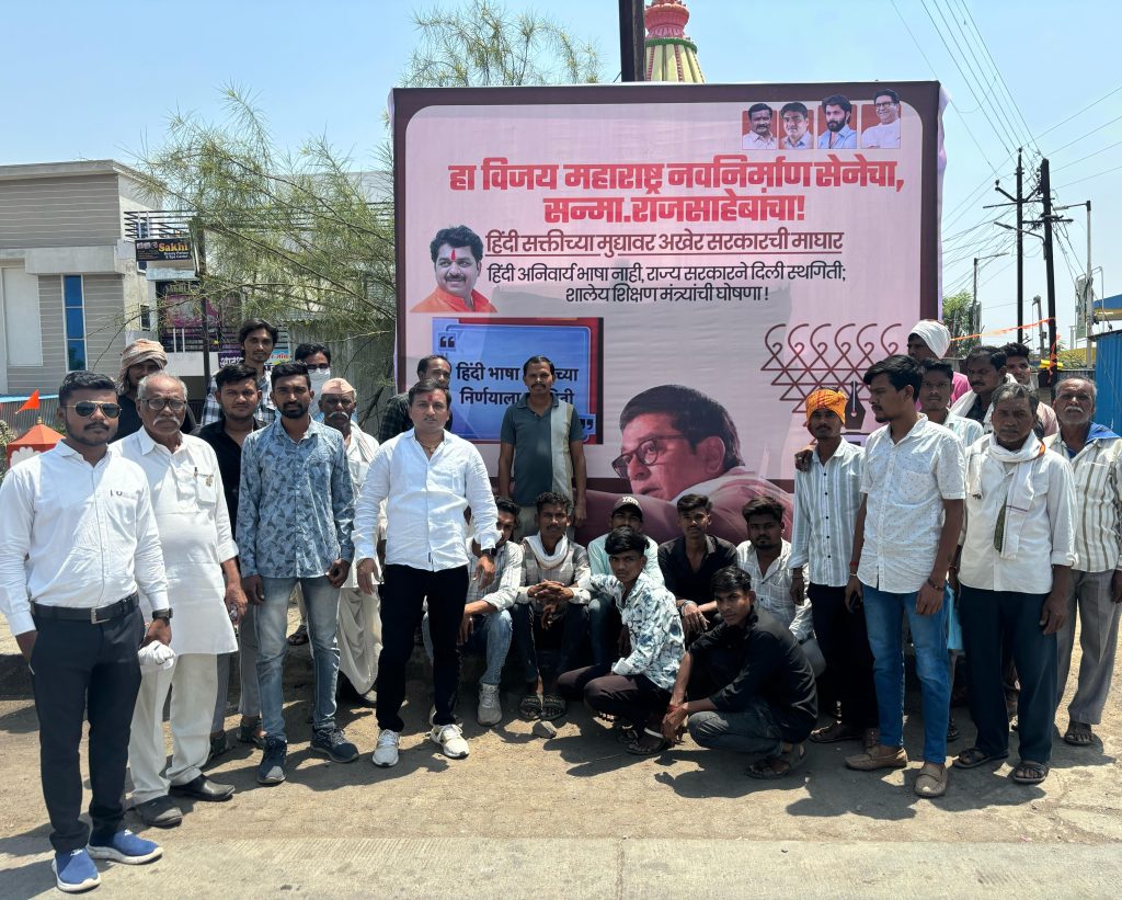 राज्यातील शाळांमध्ये हिंदी भाषा अनिवार्य करण्याच्या निर्णयावर मनसेने केलेल्या जोरदार विरोधानंतर अखेर आज राज्य सरकारने माघार घेतली आहे. शालेय शिक्षण मंत्री यांनी आज विधानसभेत याबाबत घोषणा केली. त्यानुसार, हिंदी आता राज्यातील शाळांमध्ये अनिवार्य भाषा नसेल. राज्य सरकारने या निर्णयाला तात्पुरती स्थगिती दिली आहे, असे त्यांनी स्पष्ट केले. गेल्या काही दिवसांपासून राज्यातील शिक्षण क्षेत्रात हिंदी भाषा अनिवार्य करण्याच्या मुद्द्यावरून वाद निर्माण झाला होता. यात महाराष्ट्र नवनिर्माण सेनेचे अध्यक्ष राज ठाकरे यांनी “हिंदू आहो हिंदी नाही” अशी गर्जना करत सरकारच्या हिंदी धोरणाला कडाडून विरोध केला होता. विद्यार्थ्यांवर भाषेचा अतिरिक्त भार पडेल, तर मराठी भाषेला दुय्यम दर्जा मिळेल व मराठी पतन होईल अशी भूमिका मनसेने घेतली होती. या पार्श्वभूमीवर राज्य सरकारने अखेर नमते घेत हा निर्णय स्थगित केला आहे. यात महाराष्ट्र नवनिर्माण सेनेचा मोठा विजय झाला असून या विजयाचा आनंद साजरा करण्यासाठी आज महाराष्ट्र नवनिर्माण सेनेच्या वतीने राळेगांव शहरात तहसील समोर मोठे फ्लेक्स लावून मराठी भाषा, मनसे व राजसाहेब ठाकरे यांच्या विजयाच्या घोषणा देत संपूर्ण वातावरण मराठीमय करण्यात आले.