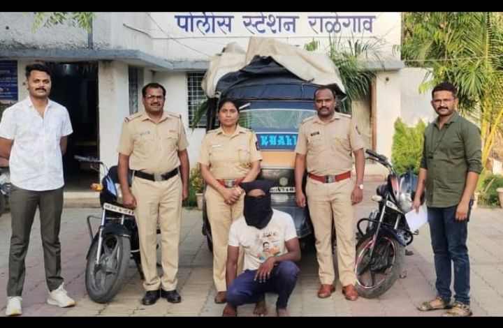 राळेगाव येथे दिनांक ४-६-२५ रोजी बसस्थानका लगत असलेला अपे अटो क्र.एम.एच.२९ व्ही ९४०४ अटो चोरुन नेल्या राळेगाव पोलीस स्टेशनला तक्रार दाखल होताच नव्यानेच रुजु झालेल्या पोलिस निरीक्षक शितल मालटे या अॅशन मोडवर येऊन आपल्या पोलिस सहकार्याना घेऊन तातडीने कापसी वर्धा रोडने चोरी करून नेलेल्या अपे अटोचा पाठलाग करुन कोसुर्ला गावाजवळ चोरी गेलेला अपे अटो दिसला असता चोरटा अल्टो ठेवून पळून जात होता त्याचा पाठलाग करुन त्याला ताब्यात घेऊन खाकीच्या स्वरुपात विचारणा केली असता त्यांनी गुन्ह्याची कबुली दिली व सदर आरोपीने १)मोटरसायकल हिरो होंडा फॅशन क्र एम.एच.२९ एस ०७४१ कींमत ५०,००० हजार रुपये,२) मोटरसायकल डिस्कवर क्रमांक एम.एच.३२ झेड ०९०५ किंमत ५०,००० हजार रुपये या दोन्ही मोटरसायकलची आरोपी ज्ञानेश्वर ऊर्फ नाना रमेश नेहारे वय २३ वर्षे रा.आपटी,ता.राळेगाव याने चोरी केल्याची कबुली दिली.असता त्यांच्या हद्दीतील हस्तगत करुन त्यांच्यावर कलम ३०३/ (२) भारतीय न्याय संहिता प्रमाणे गुन्हा दाखल करण्यात आला आहे.सदरची कार्यवाही कुमार चिंता पोलिस अधीक्षक,पियुष जगताप अप्पर पोलीस अधीक्षक, रामेश्वर वेंजणे उपविभागीय पोलिस अधिकारी पांढरकवडा, शितल मालटे पोलिस निरीक्षक राळेगाव पोलीस स्टेशन, दिपक राणे पोलिस उपनिरीक्षक, गोपाल वास्टर जमादार,सुरज चिव्हाणे पोलिस अंमलदार यांनी केली.