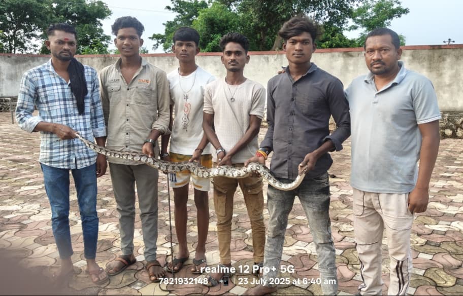राळेगाव तालुक्यातील वरुड जहांगीर येथील गावाच्या सभोवताली एका बाजूला नाला असून नविन वस्तीला लागून शेत आहे.या नाल्याची काहीतरी थातुरमातुर पद्धतीने डाग डुगी केली असून नाला संपूर्ण रूंदीकरण व सरळीकरण करण्यात आला नसल्याने नाल्यात खूप मोठ्या प्रमाणात कचरा झाडं झुडपं झाली आहे. अशातच काही दिवसांपूर्वी याच तरूणांनी मंदिरासमोर अजगर जातीचा साप पकडला होता आणि आता परत वरूड जहांगीर येथील वार्ड नंबर एक मधील विठ्ठल ठाकरे यांच्या जनावरांच्या गोठ्यात आज सकाळी अजगर जातीचा साप पकडला असल्याने रहिवाशांमध्ये भितीचे वातावरण निर्माण झाले असून सदर ग्राम पंचायतीने नाल्यांची सफाई करतांना संपूर्ण स्वच्छता केली असती तर कदाचित हा प्रसंग उद्भवला नसता करीता ही गोष्ट गांभीर्याने घेऊन गावाच्या सभोवताली तणनाशक फवारणी करून स्वच्छ करावा सोबतच संपूर्ण गावातील स्ट्रीट लाईट सुद्धा नियमित सुरू राहील याची दक्षता घ्यावी. अशा एक ना अनेक प्रश्न ग्राम पातळीवर अपूर्ण असून आतापर्यंत दोन अजगर जातीचे साप पकडले असून अजूनही काही अजगर आहे का अशी शंका व्यक्त केली जात असून नाल्यांची सफाई युद्ध पातळीवर करण्यात यावी अशी मागणी गावकऱ्यांकडून होत असून अजगर जातीचा साप पकडण्यासाठी सचिन आत्राम, रितेश कोवे, राजकुमार आत्राम, महेंद्र बावणे,रोहन कोवे, सुमित ढगे यांनी अथक परिश्रम घेऊन या घरमालकाला भयमुक्त केले असल्याने विठ्ठल ठाकरे यांनी वरील तरूणांचे आभार मानले आहेत.