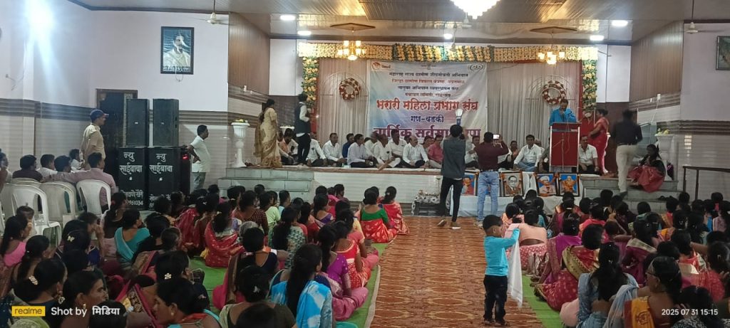 वडकी येथे उमेद महाराष्ट्र राज्य ग्रामीण जीवनोन्नती अभियान अंतर्गत पंचायत समिती कक्ष जिल्हा यवतमाळ अंतर्गत भरारी महिला प्रभाग संघ वडकी ची आर्थिक वार्षिक सर्वसाधारण सभेचे आयोजन दिं.३१ जुलै २०२५ रोज गुरुवार करण्यात आले होते. या सभेच्या उद्घाटन प्रसंगी मा.ना.आदिवासी मंत्री अशोक उईके म्हणाले की महाराष्ट्र ग्रामीण जीवन्नोती अभियानांतर्गत महिला सक्षमीकरण करण्यासाठी महाराष्ट्र सरकार कट्टीबद्ध असल्याचे या सभेदरम्यान आपले मनोगत व्यक्त करतांना सांगितले.