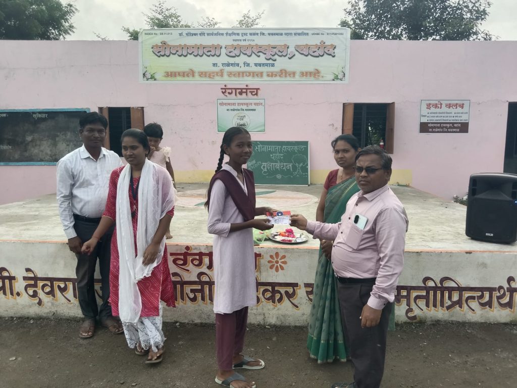 सोनामाता हायस्कूल येथे नारळीपौर्णिमा व रक्षाबंधनानिमित्त “वृक्षबंधन” कार्यक्रम साजरा करण्यात आला. यात विद्यार्थ्यांना पर्यावरण संवर्धन व निसर्ग रक्षणाची जाणीव व्हावी, म्हणून विद्यार्थ्यांच्या हस्ते शाळेतील वृक्षांना राखी बांधण्यात आली.कार्यानुभव या विषया अंतर्गत सहशालेय उपक्रम म्हणून विद्यार्थ्यांना राखी तयार करण्याची स्पर्धा हा उपक्रम घेण्यात आला. उत्कृष्ट अशी राखी तयार करणाऱ्या विद्यार्थ्यांना प्रोत्साहन पर बक्षिसे देण्यात आली. तयार झालेल्या राख्या शाळेतील विद्यार्थी शिक्षक यांना बांधून शालेय स्तरावर रक्षाबंधनाचा कार्यक्रम घेण्यात आला. यातून विद्यार्थ्यांमध्ये बंधुभाव सहकार्य करण्याची भावना जागृत होईल,तसेच पर्यावरण प्रेम जागृती करण्याच्या हेतूने शाळेत वृक्ष संवर्धन व्हावे व विद्यार्थ्यांना वृक्षा बद्दल जाणीव जागृती निर्माण व्हावा वृक्षाचे महत्त्व समजून घेऊन त्याची संवर्धन करण्याची सवय लागावी म्हणून शाळेतील परिसरात असलेले वृक्षांना रक्षाबंधन करून रक्षाबंधन कार्यक्रम साजरा करण्यात आला. या सणांच्या माध्यमातून विद्यार्थ्यांमध्ये जिव्हाळ्याची भावना निर्माण होईल असे प्रतिपादन शाळेचे मुख्याध्यापक श्री अनिल धोबे सर यांनी केले.कार्यक्रमाचे प्रास्ताविक श्री दांडेकर सर व आभार श्री कांबळे सर यांनी मानले. शाळेतील सर्व शिक्षक शिक्षकेतर कर्मचारी विद्यार्थी यांनी कार्यक्रमाच्या यशस्वीतेसाठी अथक परिश्रम घेतले.