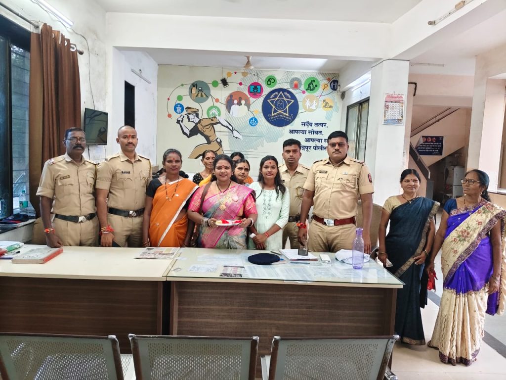 बल्लारपूर:- बहिन भावाच्या नात्यातील पवित्र सण म्हणजेच रक्षाबंधन बहिन भावाला राखी बांधत स्वतःच्या रक्षणाचे वचण घेत असते याच पवित्र सणाचे औचित्य साधून दरवर्षी प्रमाणे या वर्षीसुद्धा चंद्रपुर जिल्हा अध्यक्ष श्री राहुल बालमवार जिल्हा सचिव किशोर मडगुलवार यांनचे प्रमुख मार्गदशनात बल्लारपूर महिला सेना तालुका अध्यक्ष यांच्या नेतृत्वात बल्लापुर पोलीस दलात पोलीस बांधवांना राखी बांधून रक्षाबंधन सोहळा साजरा बल्लारपूर पोलीस स्टेशनचे नवनिर्वाचित कर्तव्यदक्ष ठाणेदार श्री. विपीन इंगळे साहेब व सहकारी पोलीस बांधव चोवीस तास आपल्या रक्षणासाठी सदैव तत्पर असतात दिवसेंदिवस महिलांवर होणारे मानसीक तथा शारीरीक अत्याचार हे नष्ट होऊन महिलांना स्वातंत्रपणे फिरता यावे बल्लारपूर शहारातच नव्हे तर चंद्रपूर शहरात देखील दिवसा ढवळ्या गोळीबार झाला या सर्व गूणेगारीवर पोलीस प्रशासणानी गांभीर्याने लक्ष वेधून महिलावर होणारे अत्याच्यार आणि गुन्हेगारी यावर आळा घालावा आणि आया बहिनी स्वातंत्र्यपणे संचार करुण सुरक्षीत राहावे आपले कार्य अधिकाअधिक प्रबळ व्हावे यासाठी मनसे महिला सेनेनी पोलीस बांधवांना राखी बांधून वचनबद्ध केले या निस्वार्थ भावणेणी बल्लारपुर महिला सेनेनी बल्लारपूर महिला सेना तालुका अध्यक्षा सौ.कल्पना पोर्तलावार यांच्या उपस्थीतीत पोलीस बांधवांना राखी बांधून रक्षाबंधन सण साजरा केला. यावेळेस भावना मेश्राम, माया गाऊकर, वैष्णवी बुरेवार, वैष्णवी कोब्रागडे, धुरपता उबडे, लता तपसाडे, वैशाली बुरेवार तथा महिला उपस्थित होते