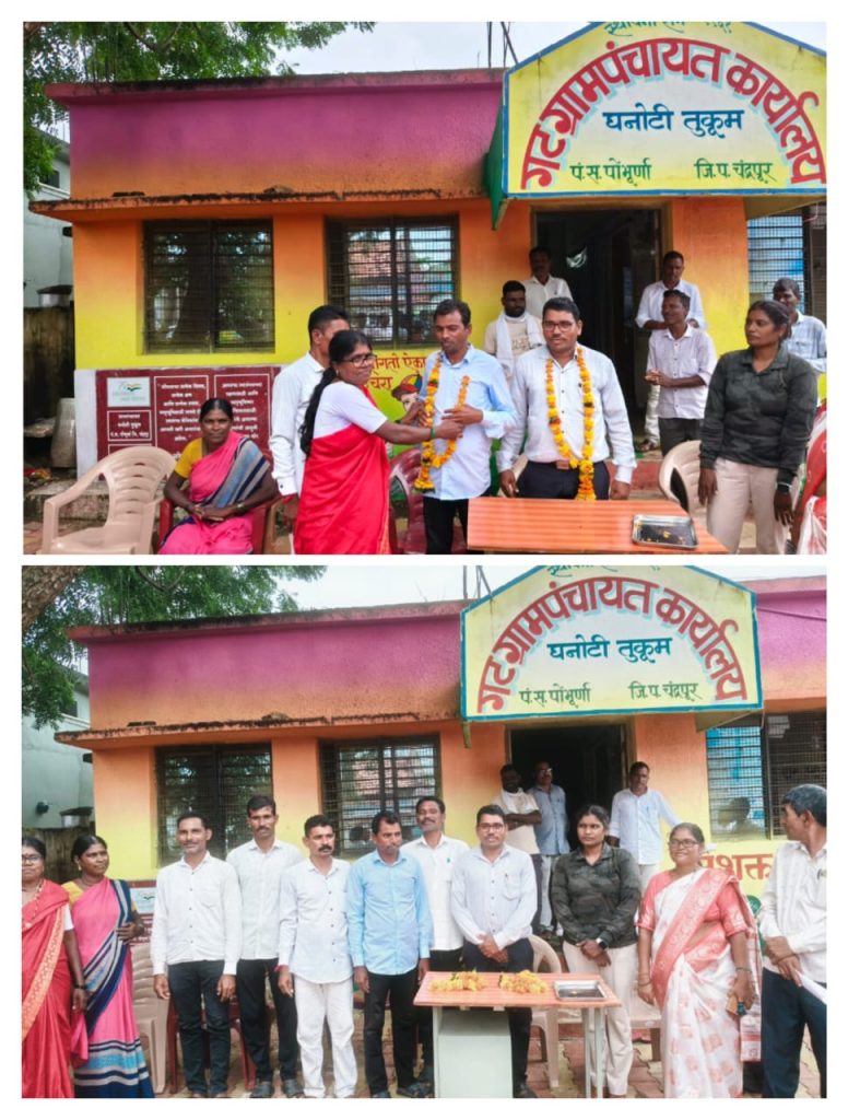 पोंभूर्णा तालुक्यातील घनोटी तुकूम येथे आज स्वांतत्र्य दिनाचे औचित्य साधून १५/०८/२०२५ रोजी संयुक्त वनव्यवस्थापन समिती गठीत करण्यात आली यामध्ये श्री रामकृष्ण भाऊ गव्हारे यांची अध्यक्ष म्हणून बिनविरोध निवड करण्यात आली तर उपाध्यक्ष म्हणून सर्वांचे परिचित श्री मारोतराव पिपरे यांची निवड करण्यात आली यावेळेस