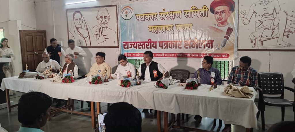 पत्रकार संरक्षण समितीचे राज्यस्तरीय पत्रकार संमेलन वर्धा जिल्ह्यातील सेवाग्राम येथे (दि १७ ऑगष्ट २०२५) रोजी झाले. राज्यभरातील ग्रामीण भागातून बहुतांशी पत्रकारांच्या उपस्थितीत अतिशय भारलेल्या वातावरणात हे संमेलन पार पडले. या प्रसंगी ग्रामीण कष्टकरी पत्रकारांच्या मूलभूत मुद्द्यावर ठरावात राज्य शासनाकडून त्यांच्या माहिती विभागाकडून सातत्याने दुर्लक्षित व असुरक्षित राहिलेल्या ग्रामीण पत्रकाराना उपेक्षेचे आयुष्य जगावे लागत आहे, आमच्या मूलभूत मागण्या आज पर्यंत आलेल्या कुठल्याही सरकारने समजून घेतल्याचा नसल्याने आता पुन्हा आमच्या न्यायासाठी हा आमच्या हक्काचा लढा आम्हांला तीव्र करावा लागेल असा सूर दिवसभरात झालेल्या चर्चेत दिसून आला.