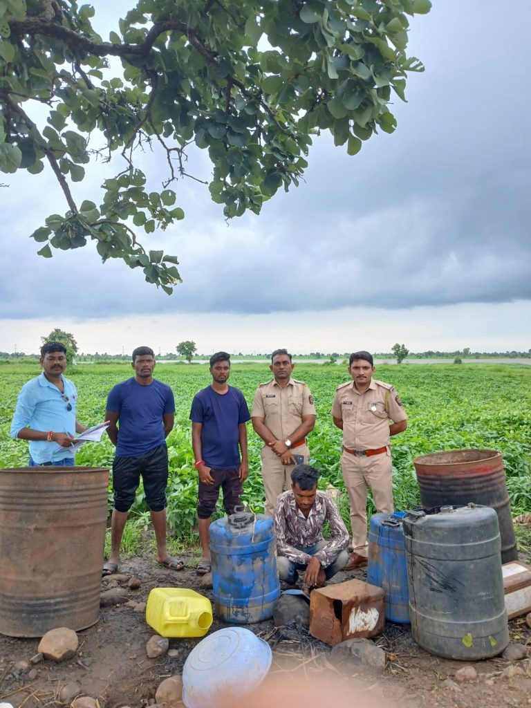 यानंतर पोलीस पथकाला ग्राम सोयती शिवारात आणखी एक ठिकाणी दारू गाळणी सुरू असल्याची माहिती मिळाल्याने त्या ठिकाणी छापा टाकण्यात आला. येथे नूतन नरेश काळे हा जागीच मिळून आला. त्याच्या ताब्यातील चार ड्रममध्ये अंदाजे ४५० लिटर मोहमाच सोडवा दारू काढण्यास उपयुक्त असा सुमारे रु. ४५,०००/- चा मुद्देमाल हस्तगत करण्यात आला.