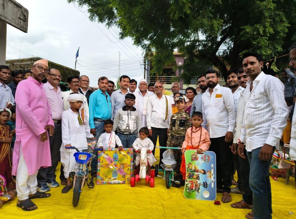 चिखली (व) येथे दरवर्षी तान्हा पोळा साजरा केला जातो परंतु या वर्षी लोकेश दिवे मित्रपरिवार तर्फे भव्य तान्हा पोळ्याचे आयोजन करण्यात आले होते व विविध बक्षीस ठेवण्यात आले त्यामुळे चिमुकल्यांची वेगवेगळी वेशभूषा,महापुरुषांचे प्रबोधनात्मक संदेश,शेतकरी या सारख्या विविध विषयांवर चिमुकल्या बालगोपालांनी सर्व गावाचे लक्ष वेधून घेतले,यावेळी परीक्षकांच्या निरीक्षणात पहिल्या पाच चिमुकल्या विजेत्यांची निवड करण्यात आली प्रथम क्रमांक मनाचा नंदी म्हणून श्लोक रमण वैरागडे या चिमुकल्याची निवड करण्यात आली व प्रथम बक्षीस म्हणून मोठी सायकल देण्यात आली,द्वितीय बक्षीस समर्थ अतुल पडोळे यांना स्टडी टेबल, तृतीय बक्षीस विधीन मुन यांना छोटी सायकल,चौथं बक्षीस विहान शेंड यांना कॅरम बोर्ड, पाचवे बक्षीस युवांश ठाकरे यांना खेळाचा घोडा,देण्यात आले व प्रोत्साहन पर बक्षीस म्हणून सर्व शेकडो बालगोपाल चिमुकल्यांना टिफिन बॉक्स देण्यात आले,तसेच सेवानिवृत्त शिक्षक गोपालराव भटकर यांचा शाल-श्रीफळ-भारतीत संविधान भेट देऊन जाहीर सत्कार सर्व लोकेश दिवे मित्रपरिवार यांच्या तर्फे करण्यात आला, गोपालराव भटकर यांच्या मार्फत असे सांगण्यात आले की लोकेश दिवे मित्रपरिवार आपल्या गावासाठी खुप सुंदर आणि गाव हिताचे काम करत आहे त्यांचे स्तुत्य उपक्रम गावाच्या विकासासाठी कमी येईल अस मत आहे,लोकेश दिवे मित्रपरिवार तर्फे तान्हा पोळा आयोजित केल्याबद्दल चिमुकल्या बाळगोपालांच्या चेहऱ्यावरील आंनद पाहून गावातील जनतेचे मन भारावून गेले असा प्रसंग गावात सदैव राहो असे जनतेचे मत आहे, या सामाजिक उपक्रमाचे गावात खुप मोठ्या प्रमाणात कौतुक होत आहे यांनतर असे सामाजिक उपक्रम लोकेश दिवे मित्रपरिवार तर्फे होत राहील असे सांगण्यात आले,यावेळी परीक्षक म्हणून जिल्हापरिषद शाळेचे शिक्षक तथा मुख्याध्यापक संदिप ईखार सर, bcci चे राजकुमार बेताल सर,प्रतिष्ठित नागरिक गोपालराव भटकर सर यांच्या सह प्रमुख पाहुणे म्हणून पोलीस पाटील कांचनताई घायवटे, कवडुजी उमाटे, केशवराव पडोळे,रंगराव खैरे,अभयराव पुडके,दिपकराव नगराळे,दिनेश कुमरे, वामनराव उमाटे,गजाननराव भटकर,सतीशराव पडोळे, तानाजी ठाकरे, कामिनाबाई आत्राम यांच्या सह लोकेश दिवे मित्रपरिवारातील लोकेश दिवे, स्वप्नील ठाकरे,दुर्वेश उमाटे,क्षितिज घायवटे,साहिल वनकर, आकाश वनकर,उमेश रहाटे,अविनाश पडोळे, दिनेश आखरे,सुहास उमाटे,संजय हुलके,यांच्या सह असंख्य नागरिक महिला तथा बाळगोपाल उपस्थित होते.