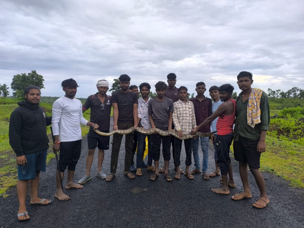 राळेगाव तालुक्यातील विहिरगांव येथे गावलगत लागून असलेल्या कपिल वगारहांडे याच्या शेतात अजगर जातीचा सात ते आठ फुट साप त्यांना आढळून आला त्यांनी गावातील सर्प मित्र धीरज येरकाडे यांना तात्काळ माहिती देऊन अजगर जातीच्या सापाला पकडून जीवदान देण्यात आले आणि त्याची चर्चा गावात वाऱ्यासारखी पसरली