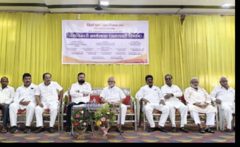 विदर्भ माध्यमिक शिक्षक संघटनेची अमरावती विभागामध्ये मजबूत बांधणी करावयाच्या उपाययोजना यावर चर्चा करण्यासाठी संघटनेच्या अमरावती विभागातील पदाधिकाऱ्यांची कार्यशाळा दिनांक 24 ऑगस्ट 2025 रोजी यवतमाळ येथील भावे मंगल कार्यालयामध्ये घेण्यात आली .