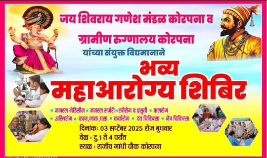 प्राथमिक आरोग्य केंद्र मांडवा अंतर्गत उपकेंद्र कोरपना मध्ये पीएचसी मांडवा, आपला दवाखाना कोरपना व RH कोरपना तथा जय शिवराय गणेश मंडळ कोरपना यांच्या संयुक्त विद्यमाने जय शिवराय गणेश मंडळ कोरपना येथे आरोग्य शिबिर* घेऊन गावातील नागरिकांच्या आरोग्यासाठी आरोग्य तपासणी करण्यात आली.
