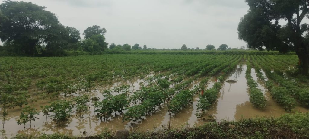 संततधार पावसामुळे पाण्याखाली गेलेली शेती.