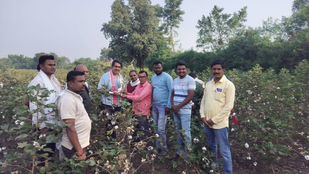 साउथ एशिया बायोटेक्नॉलॉजी दिल्ली चे संचालक भगीरथ चौधरी यांनी एसटीबीटी कपाशीची पाहणी करून संवाद साधला असता