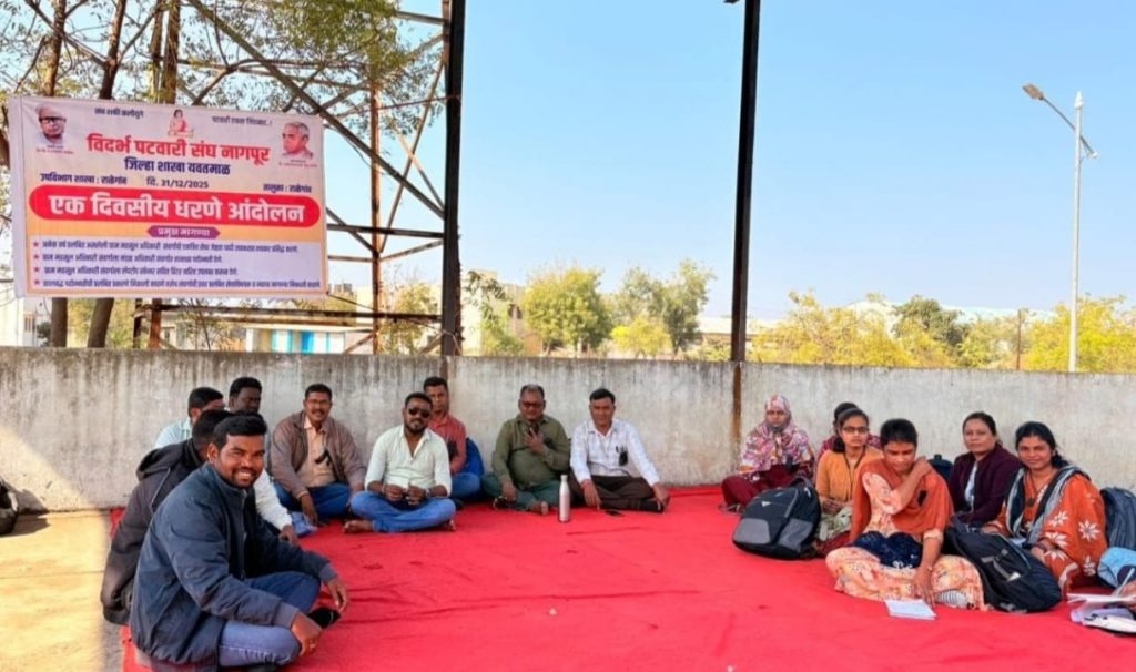 विदर्भ पटवारी संघ नागपूर शाखा यवतमाळ उप शाखा राळेगाव येथील ग्राम महसूल अधिकारी यांचे आज दिं.३१ डिसेंबर २०२५ रोजी प्रमुख मागण्या संदर्भात तहसील कार्यालय समोर एक दिवसीय धरणे आंदोलन करण्यात आले.