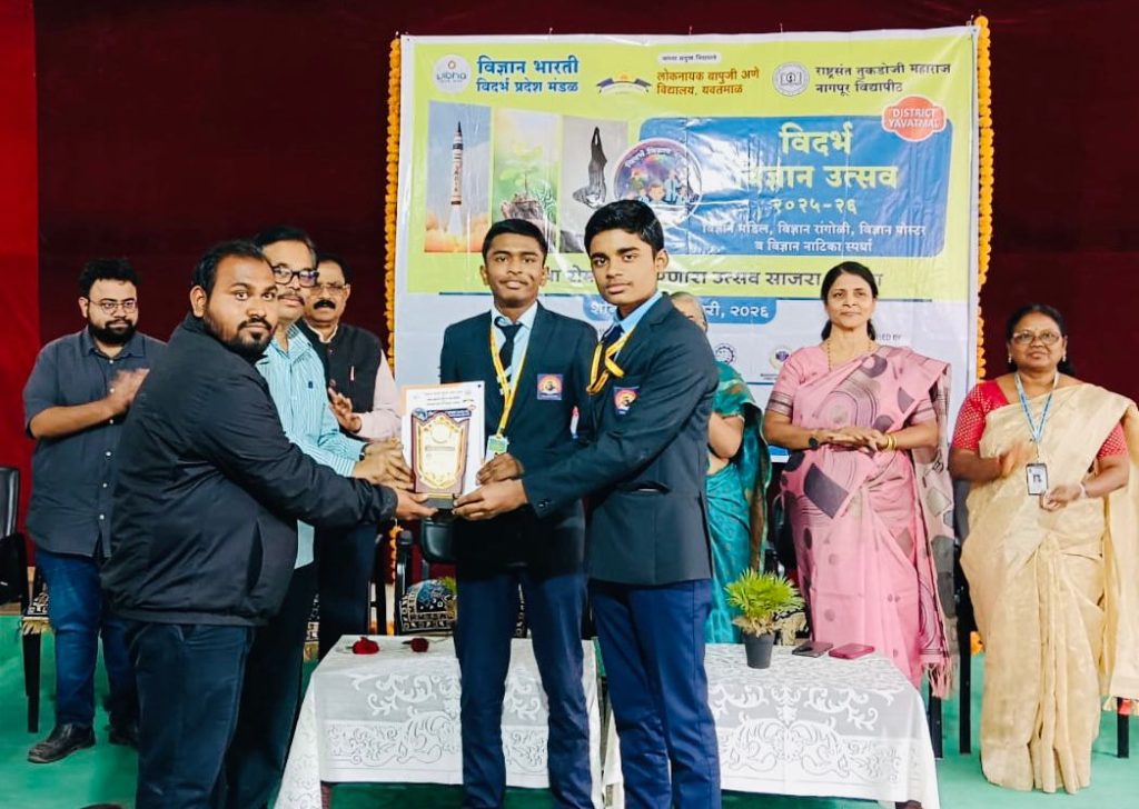 विज्ञान भारती विदर्भ प्रदेश व राष्ट्रसंत तुकडोजी महाराज विद्यापीठ नागपूर यांच्या संयुक्त विद्यमाने विदर्भ स्तरीय विज्ञान उत्सव अंतर्गत विज्ञान पोस्टर स्पर्धा,विज्ञान मॉडेल स्पर्धा,विज्ञान चित्रकला स्पर्धा, विज्ञान नाटिका स्पर्धेचे आयोजन आज दि. 3/1/2026 रोजी लोकनायक बापूजी अणे विद्यालय यवतमाळ येथे आयोजित करण्यात आले. त्यात जिल्यातील अनेक शाळेने सहभाग नोंदविला. मार्कंडेय पब्लिक स्कूल च्या विद्यार्थ्यांनी विज्ञान पोस्टर स्पर्धेत प्रथम, विज्ञान मॉडेल स्पर्धेत प्रथम, तसेच चित्रकला स्पर्धेत सुद्धा प्रथम व नाटिका स्पर्धेत द्वितीय येऊन विध्यार्थ्यानी नाव लौकिक केले. विज्ञान भारती विदर्भ प्रदेश अंतर्गत दरवर्षी अनेक स्पर्धेचे केल्या जातात त्यात विज्ञान विषयक अध्ययवत ज्ञान विद्यार्थ्यांना प्राप्त होते व त्या अंतर्गत विज्ञान विषयक रुची व आवड निर्माण होऊन स्पर्धात्मक विकास घडून येतो. स्पर्धेत सहभागी शाळेचे विद्यार्थी कु. अनन्या उत्तरवार, साई उंबरकर, पारितोष आगलावे, कु. तनया चांदोरे,कु. मृणाली त्रिपदवार, कु. यादवी आगलावे, पुष्कर राऊत, अयाज अली सय्यद, कु लावण्या खेकारे कु. इशिका पाटील, कु श्रुतिका पटेलपैक,कु. श्रावणी होरे, कु. मनस्वी कोल्हे, कु. आराध्या येणोरकर,ज्ञानेश्वरी राजकोल्हे, कु. स्नेहा सोनाळे, सिद्धी येपारी, कु.रुचिता गाडगे, कु अक्षरा चौधरी, कु प्रियल पाटील,कु. अमृता वाघमारे,कु. आशिता जयस्वाल, कु कृष्णाली मदणकर यांनी घेतला सोबतच शाळेचे शिक्षक श्री. निखिलकुमार चाटलेवाड, सौं. अनामिका खंडाळकर,श्री.अरविंद बटाले, श्री. मनोज भगत, श्री. प्राजक्त वाकेकर आदींचे मार्गर्दन लाभले.सर्व यशस्वी विद्यार्थ्यांचे संस्थेचे अध्यक्ष डॉ. शीतल बल्लेवार व संस्थेचे सचिव डॉ. संतोष कोकुलवार व विज्ञान भारती विदर्भ प्रमुख सौं. ताटे मॅडम यांनी अभिनंदन करून पुढील वाटचालीस शुभेच्छा दिल्या.
