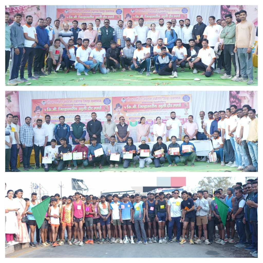 राळेगाव : वीर भगतसिंग यांच्या विचारांना अभिवादन करत युवकांना खेळाकडे वळविणे तसेच व्यसनमुक्त जीवनाचा संदेश देण्याच्या उद्देशाने वीर भगतसिंग संघटना, राळेगाव यांच्या वतीने जिल्हास्तरीय रनिंग स्पर्धेचे आयोजन करण्यात आले होते. या स्पर्धेला जिल्हाभरातून मोठ्या संख्येने स्पर्धकांचा उत्स्फूर्त प्रतिसाद लाभला असून प्रमुख पाहुणे व अध्यक्षांच्या वतीने प्रतिमेचे पूजन व मान्यवरांचे स्वागत करून