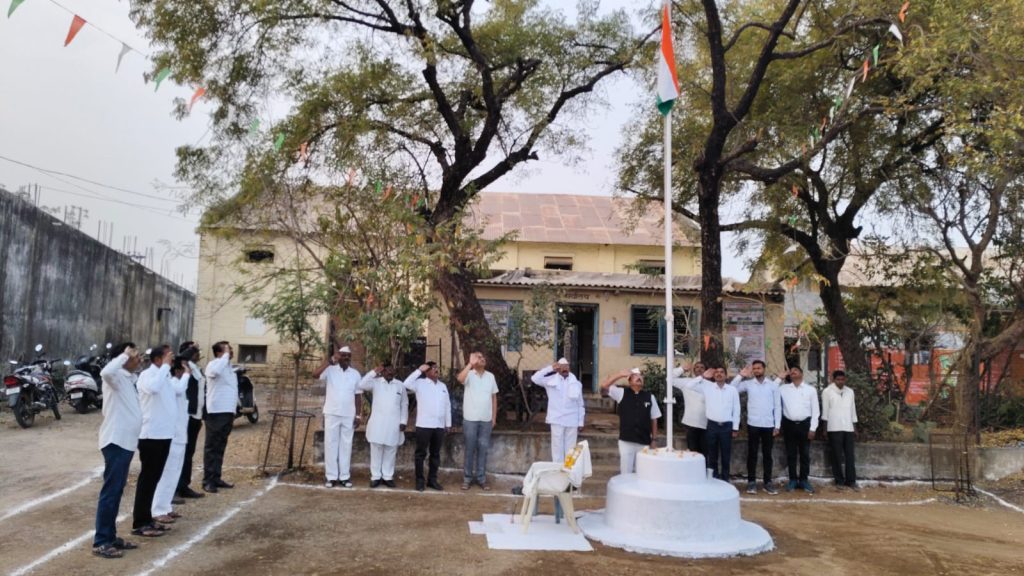 राळेगाव येथील खरेदी विक्री संघाच्या कार्यालयात सभापती मिलिंदभाऊ इंगोले यांच्या हस्ते ध्वजारोहण करण्यात आले त्यावेळी उपसभापती मारोतराव पाल संचालक श्रावणसिंग वडते सर, संचालक श्री श्रीधरराव थुटुरकर सर भैय्यासाहेब बहाळे जितूभाऊ कहुरके अशोकराव काचोळे विनोद भोकटे प्रविण झोटींग मंगेश राऊत मनोज पेंदोर दिलीप कन्नाके संजय दुरबुडे नितीन कोमेरवार मनोज वर्मा विनोदराव जयपूरकर कवडूजी कांबळे राहुल बहाळे रमेश पेंदाम विनोद जयपूरकर अंकुश रोहणकर, रूपेश कोठारे, अरविंद तामगाडगे, लियाकत भाई अली सैय्यद,नानाभाऊ आव्हाड,पायघन सोबतच लेखापाल गणेश हिवरकर सचिन बोरकर अवधूत शेराम रोशन शिवरकर यांच्या सह अनेक मान्यवर उपस्थित होते.त्यावेळी प्रजासत्ताक दिनी वाढदिवस असणारे मातंग समाजाचे जेष्ठ कार्यकर्ते श्री नानाभाऊ आव्हाड यांचा सत्कार करण्यात आला.