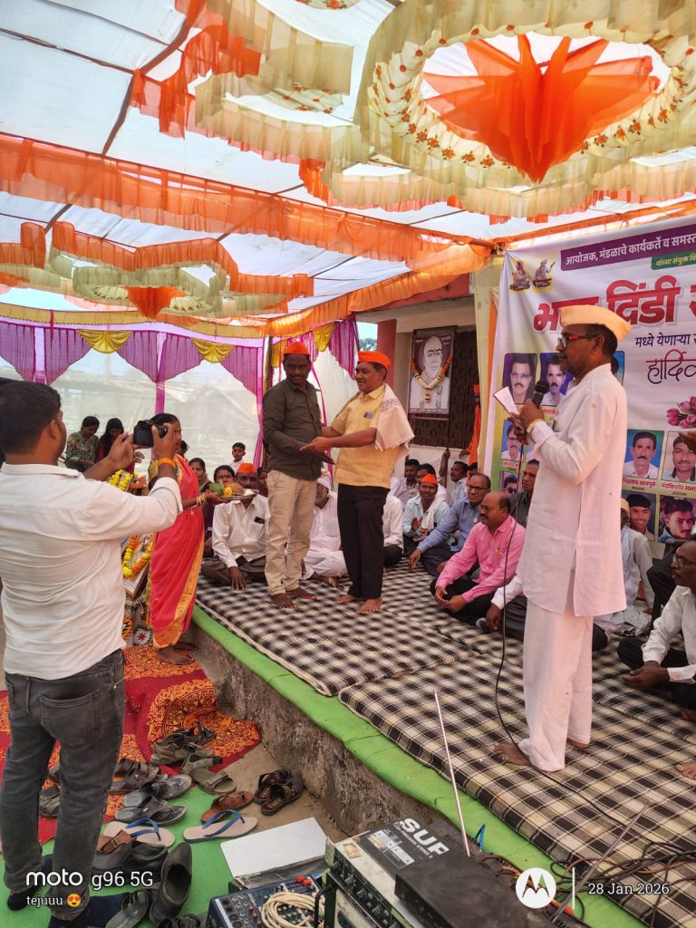 शिवरा ( गोपाल नगर ) येथे वंदनीय राष्ट्रसंत तुकडोजी महाराज यांच्या पुण्यतिथी निमित्त दिंडी संमेलन आयोजित केले होते या कार्यक्रमात विविध सामाजिक क्षेत्रात काम करणाऱ्या सामाजिक कार्यकर्त्या चा ग्राम भुषण म्हणून सत्कार करण्यात आला होता माननीय मधुसूदन कोवे गुरुजी, अध्यक्ष ग्राम स्वराज्य महामंच यांच्या सामाजिक कार्याची दखल घेत दिंडी संमेलन मध्ये ग्राम भुषण म्हणून सत्कार करण्यात आला होता या कार्यक्रमात सहभागी अध्यक्ष मा डॉ कुणाल भोयर शहर अध्यक्ष राळेगाव भारतीय जनता पक्ष आणि दिंडी संमेलन मध्ये उद्घाटक म्हणून संत बालयोगी अनंत महाराज श्रीरामपूर कोदुर्ली तसेच विशेष उपस्थिती मा रणधिर कीनाके जिल्हा उपाध्यक्ष राष्ट्रसंत तुकडोजी महाराज आणि वारकरी सांप्रदायिक संघटना यवतमाळ मा कृष्णा जी भोंगाडे जिल्हा अध्यक्ष विदर्भ राज्य आंदोलन समीती यवतमाळ मा गंगाधरजी घोटेकर आजिवन प्रचारक राष्ट्रसंत तुकडोजी महाराज मा संतोष शर्मा राधा स्वामी सतसंघ जोडमोहा मा बंडुजी भुडे ग्राम पंचायत सदस्य श्रीरामपूर मा बावने साहेब सेवा निवृत्त पोलीस अधिकारी मा महादेवराव मेश्राम ग्राम पंचायत सदस्य श्रीरामपूर लक्ष्मण किनेकर ग्राम पंचायत सदस्य शेळी मा दिनकर वाकुलकर चारुदत्त नेरकर यवतमाळ या सर्व मान्यवर यांच्या उपस्थितीत ग्राम भुषण सत्कार सोहळा आणि दिंडी संमेलन कार्यक्रम यशस्वी झाला होता कार्यक्रमाचे मुख्य मार्गदर्शक मा मधुसूदन कोवे गुरुजी, अध्यक्ष ग्राम स्वराज्य महामंच आणि ” तुकड्या ची झोपडी ” साहित्यिक म्हणून त्यांनी ग्रामीण भागातील लोकांना साध्या आणि सोप्या भाषेत राष्ट्रसंत तुकडोजी महाराज यांच्या ग्राम गिता चा प्रचार आणि प्रसार करुन ग्राम स्वराज्याचे महत्त्व पटवून सांगितले म्हणून ग्रामीण भागातील लोकांनी मा मधुसूदन कोवे गुरुजी यांच्या कार्याचा गुणगौरव ” ग्राम भुषण ” म्हणून केला आहे हा समाज गौरव आहे म्हणून आम्ही तो स्विकारतो आहे असे स्पष्ट मत कोवे गुरुजी यांनी मांडले या कार्यक्रमाचे आयोजन मा भगवान जी कोवे आणि गुरुदेव सेवा मंडळ शिवरा ( गोपाल नगर ) यांनी केले होते या कार्यक्रमाचे सूत्रसंचालन सुधीर चौधरी एकलारा यांनी केले होते या कार्यक्रमात तिरझडा दिंडी, सावंगी दिंडी कोदुर्ली दिंडी इसापूर दिंडी यांना नारळ पानं देऊन सन्मानित करण्यात आले होते या कार्यक्रमात सहभागी अशोक मंगाम दिलीप मेश्राम कैलास धुमाळ नरेंद्र आडे बाबाराव येलेकर अन्नाजी चांदेकर शालिक कोवे सदानंद मंगाम नानाजी कोवे अमोल तोडासे वसंतराव सलामे सुरेश उइके दुर्गादास मेश्राम कीशोर आडे वसंतराव ठाकरे मनोज वाकुलकर अशोकराव मेश्राम सर्व आजु बाजू चे गुरुदेव सेवा मंडळ मधील भजनी सदस्य याचा समावेश होता मह