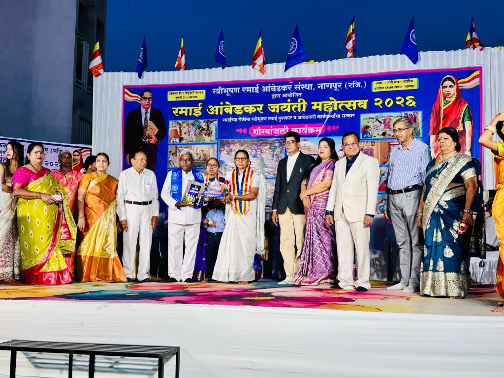 नागपूर स्त्री भूषण रमाई आंबेडकर संस्था नागपूर द्वारा आयोजित रमाई आंबेडकर जयंती महोत्सव 2026 सर्वोदय नगर वाठोडा नागपूर येथे त्याच्ग मूर्ती माती रमाई जयंती कार्यक्रम उत्साह साजरा करण्यात आला. सदर कार्यक्रमात शांतीनगर कावळा पेठ येथील धम्म चळवळीचे सामाजिक कार्यकर्ते जीवन बोधी बौद्ध यांना सन्मानचिन्ह ,भारतीय संविधान , शाल , पुष्पगुच्छ देऊन सत्कार करण्यात आला.