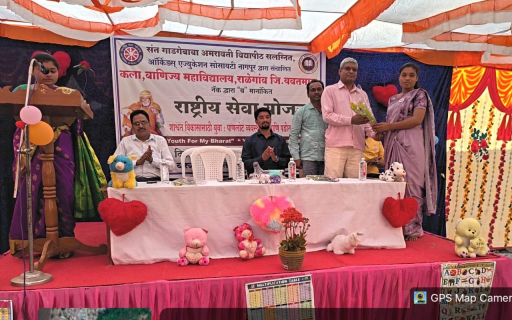 राष्ट्रीय सेवा योजना, कला, वाणिज्य महाविद्यालय, राळेगाव यांच्या द्वारा डॉ भास्कर सावरकर यांच्या मार्गदर्शनात वरूड जहागीर येथे २ ते ९ फेब्रुवारी २०२६ या कालावधीत “शाश्वत विकासासाठी युवा : पाणलोट व्यवस्थापन आणि पडिक जमीन विकास” या थिमवर आधारीत विशेष शिबिराचे आयोजन करण्यात आले. या शिबिरादरम्यान दिनांक ७ फेब्रुवारी रोजी “सर्वांगीण ग्रामीण विकासासाठी संस्कार केंद्र” या विषयावर बौद्धिक सत्राचे आयोजन करण्यात आले.