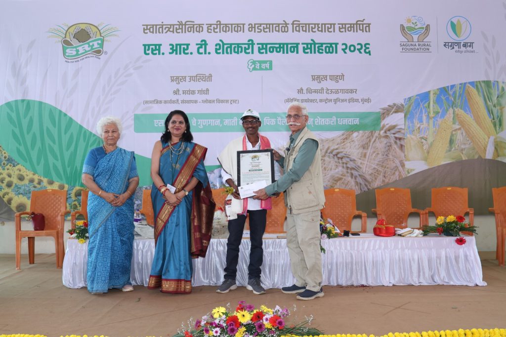 शेतीमध्ये नवनवीन प्रयोग करून शेतकऱ्यांचे जीवनमान उंचावण्याचे कार्य करणाऱ्या सगुणा रूरल फाउंडेशनच्या वतीने दिला जाणारा २०२६ चा ‘उत्कृष्ट शेती शाळा’ पुरस्कार येवती येथील प्रगतशील शेतकरी उमेश पोहंदरे यांना प्रदान करण्यात आला. नेरळ येथील प्रसिद्ध ‘सगुणा बाग’ येथे आयोजित दिमाखदार सोहळ्यात हा सन्मान सोहळा पार पडला.
