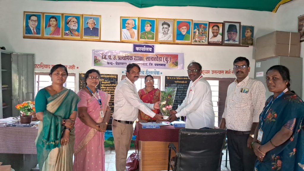 जि.प.उ.प्रा.डिजिटल शाळा,सायखेडा (बु) केन्द्र-येळाबारा पं.स.यवतमाळ या शाळेची वार्षिक तपासणी मा. श्रीमती नलिनी वंजारी मॅडम,विस्तार अधिकारी (शिक्षण),पं.स.यवतमाळ.मा.श्री.प्रविण चिलकुलवार सर,केन्द्रप्रमुख ,केन्द्र- येळाबारा