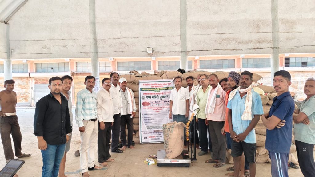 राळेगाव येथील खरेदी विक्री संघाच्या वतीने नाफेड चना खरेदीचे उद्घाटन आज दिनांक 6/4/2026 रोज सोमवारला दुपारी 12.30 वाजता कृषी उत्पन्न बाजार समितीच्या कार्यालयाच्या शेडमध्ये करण्यात आले.या खरेदीचे उद्घाटन खरेदी विक्री संघाचे संचालक श्रावणसिंग वडते सर,श्रीधरराव थुटुरकर सर, संचालक पवनसेठ छोरिया त्यांच्या हस्ते करण्यात आले.त्यावेळी सर्वप्रथम चना घेऊन येणारे शेतकरी चैतन्य पाल आणि आशिष वरघणे यांचा शाल श्रीफळ व पुष्पगुच्छ देऊन सत्कार करण्यात आला.त्यावेळी विशाल टापरे सागर वनस्कर राजू जगताप मनोज घोडाम सोबतच संस्थेचे कर्मचारी सचिव संजय जुमडे, लेखापाल गणेश हिवरकर, श्रीराम रामटेके अमृत पाझारे प्रकाश हिवरकर रोशन शिवरकर तसेच मापारी आणि हमाल उपस्थित होते.