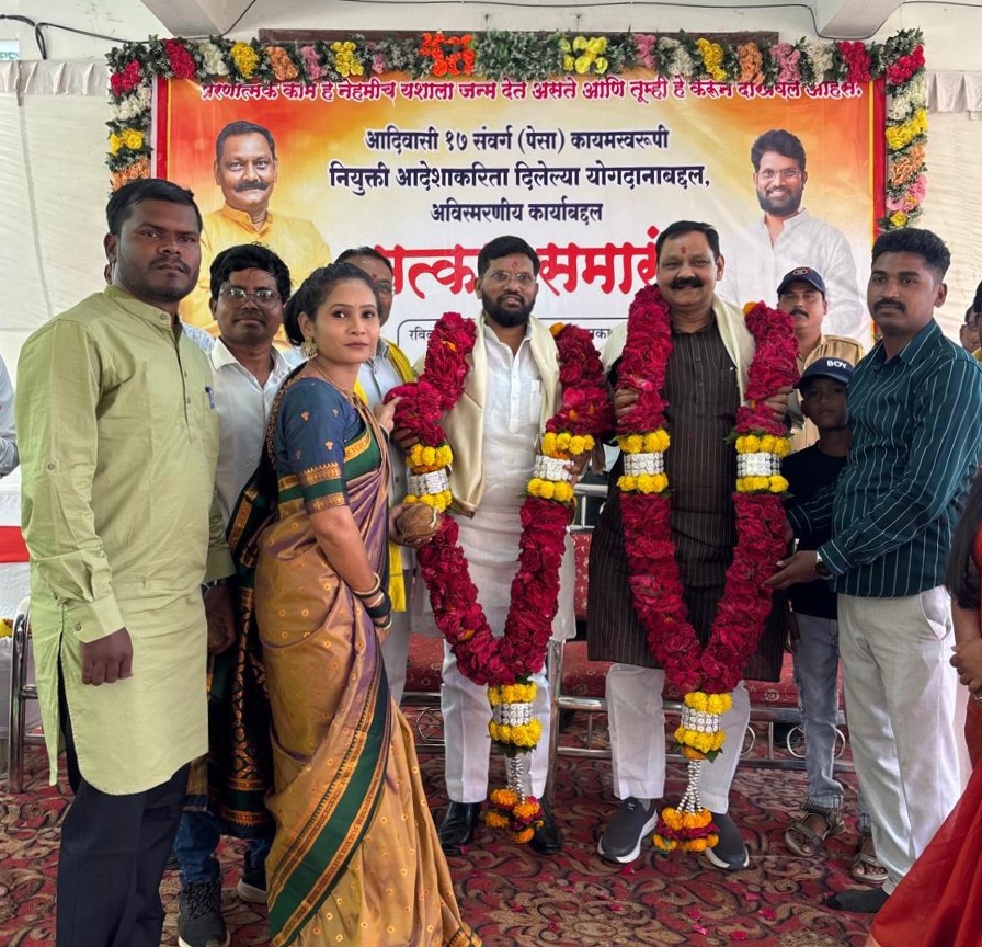 यवतमाळ :- यवतमाळ जिल्ह्यातील पांढरकवडा तालुक्यातील जंगोदाई पेनठाणा येथे आदिवासी 17 संवर्ग (PESA) अंतर्गत उमेदवारांना कायमस्वरूपी नियुक्ती मिळवून देण्यासाठी लढा देणाऱ्या मान्यवरांच्या सन्मानार्थ कृतज्ञता सत्कार सोहळा उत्साहात पार पडला.