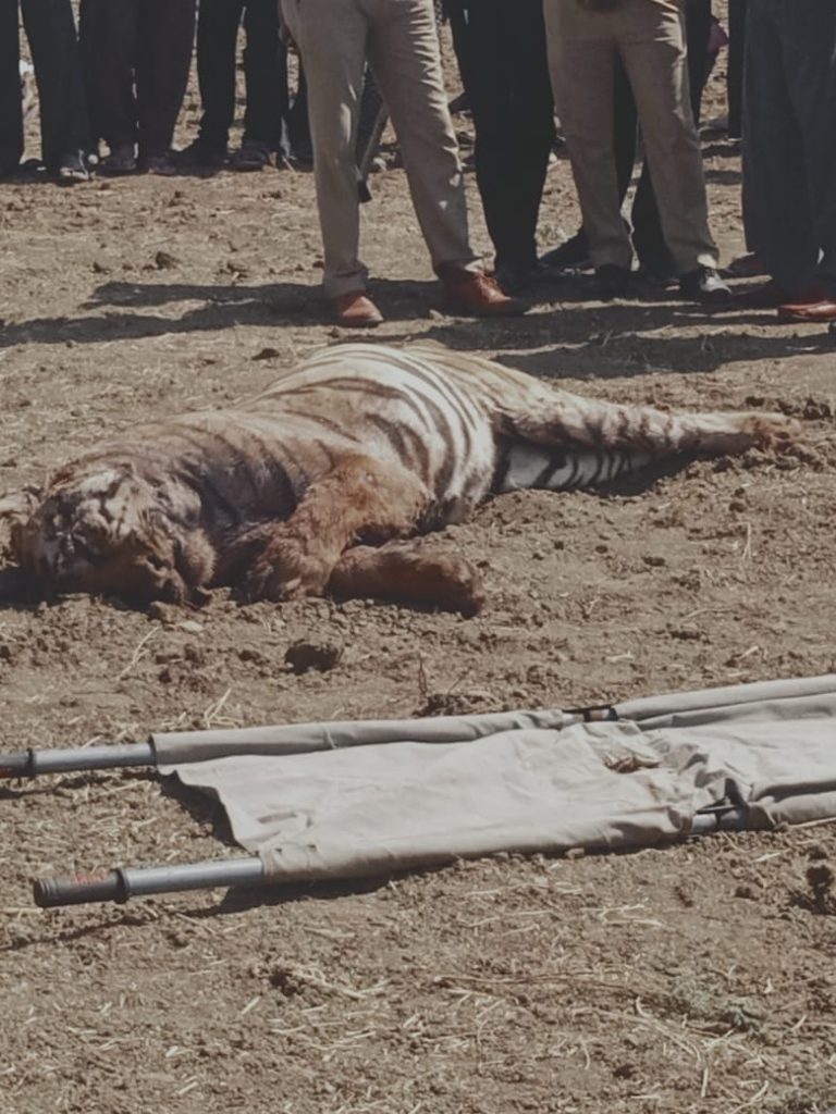 वरोरा तालुक्यातील शेगाव येथून जवळ असलेल्या अर्जुनी- कोकेवाडा परिसरात गेल्या अनेक दिवसापासून वाघाची दहशत सुरू हकती ,हा परिसर ताडोबा व्याघ्र प्रकल्पाला लागून असल्याने या भागात वाघांचा तसेच जंगली जनावरांचा वावर जास्त प्रमाणात असतो. याच भागातील एका शेत शिवारात एक वाघाचा मृतदेह असल्याची घटना समोर आल्याने परिसरात खळबळ माजली आहे. या घटनेची माहिती मिळताच वनविभागाचे अधिकारी व कर्मचारी घटनास्थळी दाखल होत पंचनामा केला .दोन वाघांच्या झुंजीत एका वाघाचा मृत्यू झाला असल्याची शक्यता असल्याचे कळते.