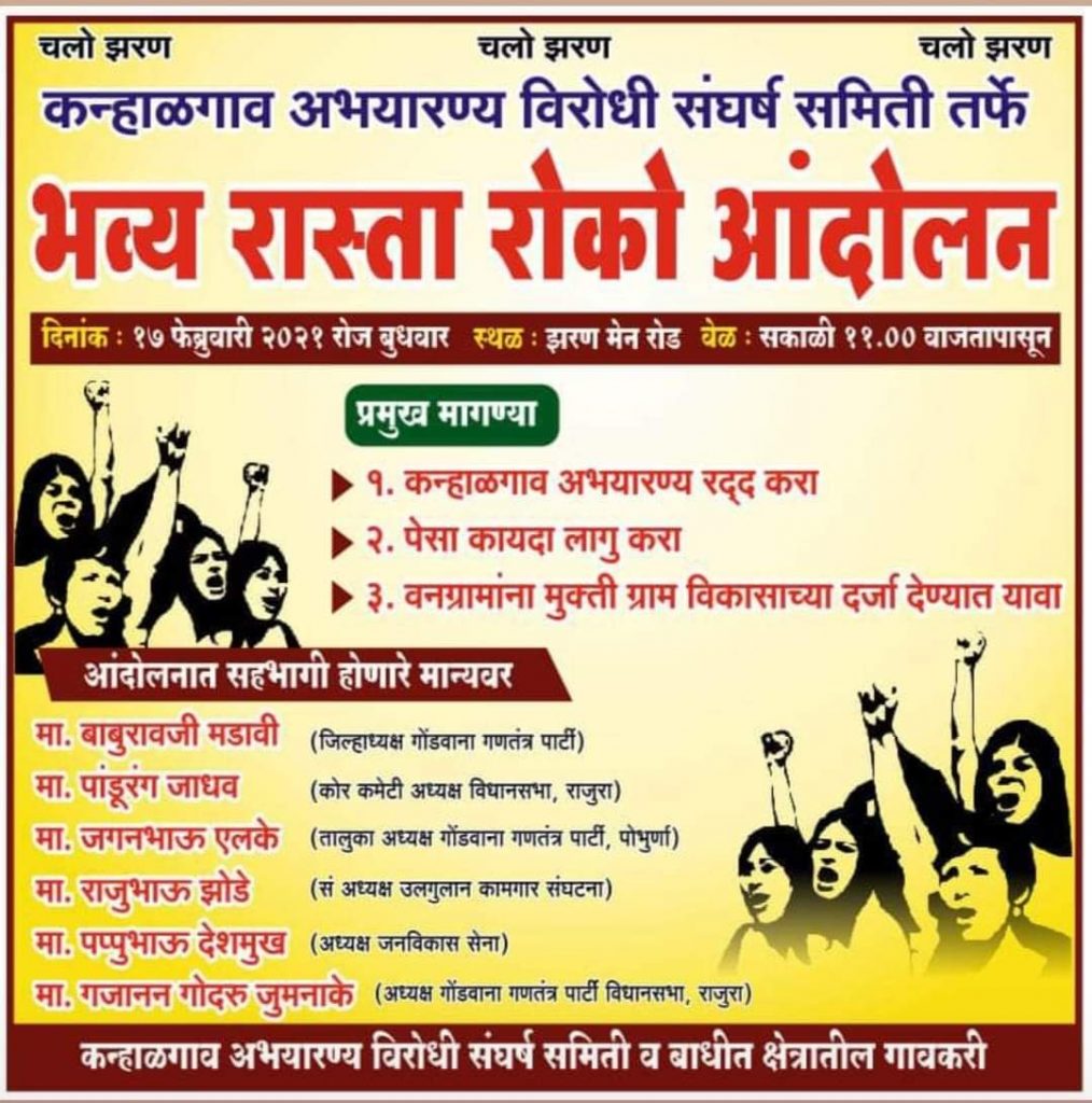 प्रमुख मागण्या:- 1) कान्हाळगाव अभयारण्य रद्द करा.