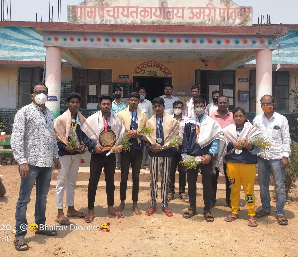 पोंभुर्णा:- नुकत्याच झालेल्या तिसरे नॅशनल ओपन कुंग-फु कराटे चॅम्पियनशिप 2021-22 हि दि. 04/04/20210 वरोरा येथील बावणे मंगल कार्यालय येथे आयोजित करण्यात आली होती. या स्पर्धेमध्ये 300-400 स्पर्धक सहभागी झाले होते. या स्पर्धेत उमरी पोतदार ता. पोंभुर्णा येथील मुलांनी विजयी होऊन स्वतः सोबत गावाचे नाव उंचावले. या स्पर्धेत एक गोल्ड दोन सिल्व्हर आणि डेमो मध्ये पहिले बक्षीस ट्रॉफी प्राप्त केली . याचा संपूर्ण श्रेय या मुलांना घडवणारे मास्टर मुकेश तांडेकर यांना जातो. मुलांना योग्य मार्ग दाखवून आज नॅशनल चॅम्पियन बनवले योग्य दिशा दाखवणारे असेल तर यशस्वी मार्गाने वाटचाल होते आणि मिळते ते म्हणजे “यश”. या स्पर्धेत सहभागी झालेले उमरी पोतदार (ता. पोंभुर्णा) येथील कोमल पेंदोर,अंकुश उराडे, स्वप्नील ठाकरे, महेश कुळमेथे, अमित कुंभरे, वैभव ठाकरे, आशिष साउलकर, अजिंक्य कुंभरे, अनिल सतार यांनी सहभाग होऊन मुलांनी केलेल्या श्रमाचे फळ त्यांनी विजय संपादन करून मिळवले. तिसरे नॅशनल ओपन कुंग-फु कराटे चॅम्पियनशिप 2021-22 चे आयोजक मास्टर प्रवीण रामटेके यांनी कोरोना सारख्या विषाणूचा संक्रमण होऊ नये म्हणून खूप चांगल्या प्रकारे उपाययोजना केल्या होत्या व आयोजन अतिशय चांगल्या प्रकारे आयोजित करून ही स्पर्धा यशस्वी रीत्या पार पाडली. या स्पर्धेमध्ये बाहेरून आलेल्या टीम ने सुद्धा आपले कला दाखवली, शेवटी स्पर्धा आहे कोणी जिंकतो तर कोणी हरतो. मेहनत करेल, जो करत राहणार मेहनत त्याला शेवटी यश मिळतोच हेच उमरी पोतदार च्या मुलांनी आज या स्पर्धेमध्ये विजयी होऊन दाखवून दिले आहे. तिसरे नॅशनल ओपन कुंग-फु कराटे चॅम्पियनशिप स्पर्धेतील विजेत्याच आ. सुधीर मुनगंटीवार यांच्या मार्गदर्शनाखाली राहुल संतोषवार सदस्य जिल्हा परिषद चंद्रपुर यांच्या हस्ते सत्कार करण्यात आला. या वेळी सरपंच ठामेश्वरी लेनगुरे, उपसरपंच मंगेश उपरे, मनोज मुलक्लवार, जयंत पिंपळशेंडे, चंद्रशेखर झगडकर, लक्ष्मण गव्हारे, भैरव दिवसे, स्वप्निल पिंपळशेंडे, राहुल वासेकर उपस्थित होते.