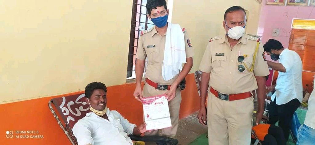कोरोना ग्रस्त नागरिकांना रक्त पुरवठा कमी पडू नये या करिता सिंदखेड़ पोलिस स्टेशन चे सहाय्यक पोलिस निरीक्षक श्री तिड़के साहेब यांच्या उपस्थितित नियमांचे पालन करत तरुनायिने मोठ्या प्रमाणात रक्तदान केले