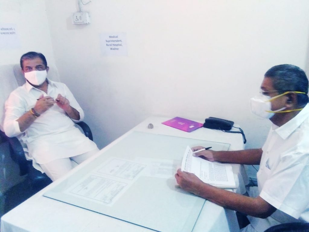 आज दिनांक १५/०५/२०२१रोज शनिवारला पालकमंत्री मा. ना. श्री सुनिलजी केदार साहेब वर्धा जिल्हयाच्या दौ-यावर आले असता वडनेर येथील ग्रामीण रुग्णालयातील सुविधांचा आढावा घेत असतांना हिंगणघाट तालुक्यात कोरोना महामारीचा प्रकोप दिवसेंदिवस वाढत असून असलेली अत्यंत कमी पडत आहे ज्यामुळे सर्वसामान्य नागरिकांना पाहिजे त्या प्रमाणात कोरोनापासुन उपचार भयंकर अडचणी येत आहेत त्यामुळे हिंगणघाट बाजार समितीचे सभापती अँड सुधीरबांबु कोठारी यांनी पालकमंत्री श्री केदार साहेब यांची प्रत्यक्ष भेट घेऊन वडनेर येथील ग्रामीण रुग्णालयात कोवीड सेंटरची मान्यता लवकरात देण्यात यावी जेणेकरून त्याचा फायदा ग्रामीण भागात व संपूर्ण तालुक्यातील जनतेला होईल. त्याला पालकमंत्र्यांनी अतिशय सकारात्मक प्रतिसाद दिला तसेच हिंगणघाट बाजार समितीचे वतीने वडनेर येथे विलगीकरण कक्ष स्थापन करण्याची तयारी व त्यांचा संपूर्ण खर्च उचलण्याची तयारी असल्याचे सभापती अँड सुधीरबाबु कोठारी यांनी बोलून दाखविले.याबाबत लवकरच सकारात्मक विचार करण्यात येईल असे आश्वासन पालकमंत्र्यांनी दिले .यावेळी अँड सुधीरबाबु कोठारी यांचेसोबत निवेदन देतांना हिंगणघाट बाजार समितीचे संचालक श्री मधुकरराव डंभारे, उत्तमराव भोयर, वडनेर ग्रामपंचायत सदस्य श्री गुरूदयालसिंगजी जुनी, खरेदी विक्री उपाध्यक्ष श्री राजुभाऊ भोरे, पांडुरंगजी निंबाळकर, कृष्णाजी महाजन उपस्थित होते.